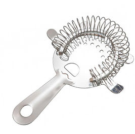 A Hawthorne type of cocktail strainer, This strainer removes ice from the mixed beverage and only allows the liquid to flow through into a glass or shaker.